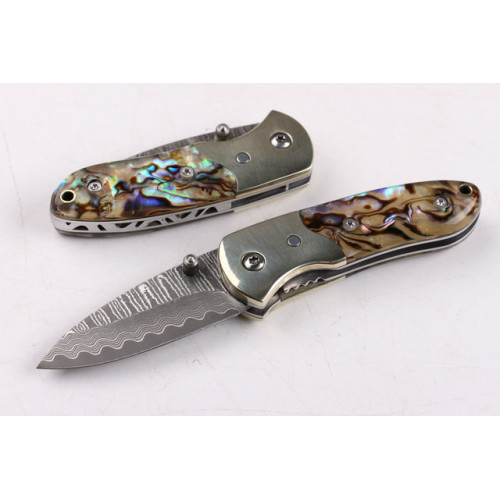 Home » Folding Blade Knife » Damascus folding knife » Damascus Small abalone pure copper folding knife UD403386